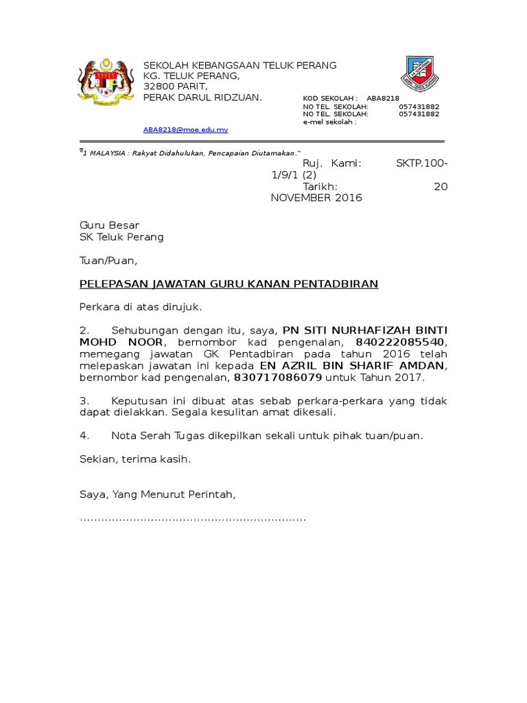 Surat Pelepasan Jawatan Gk Pdf