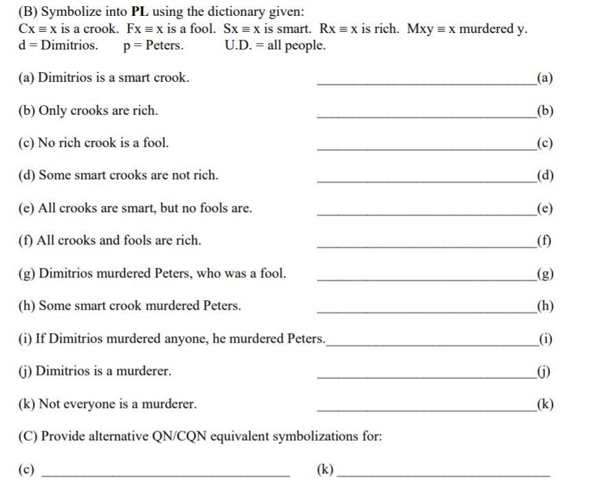 Solved B Symbolize Into Pl Using The Dictionary Given Chegg Com
